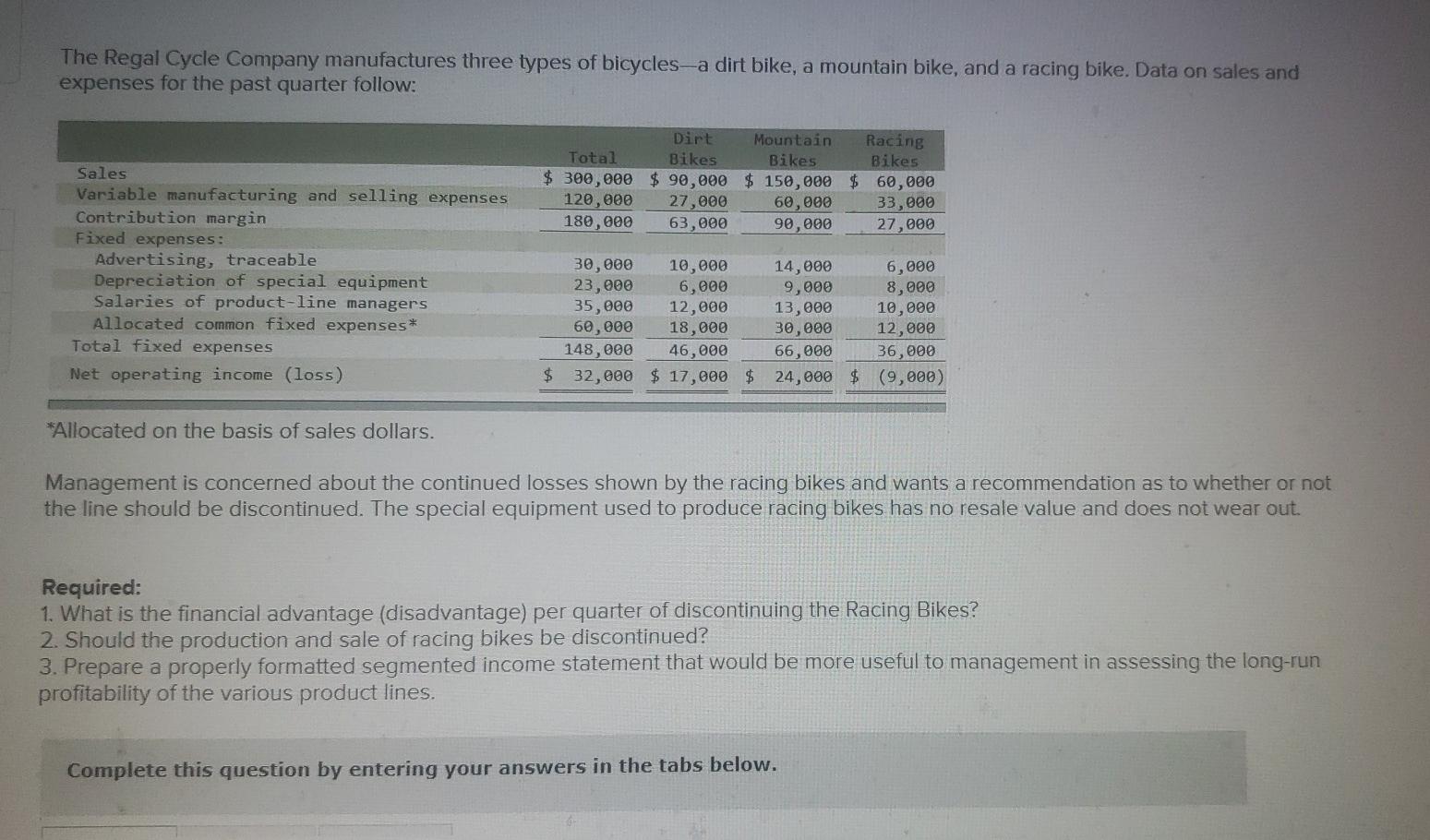 Solved The Regal Cycle Company manufactures three types of What Is The Profit Margin On Bikes Web what is the average profit margin for a bike shop? Web gross profit (gp) is the difference between how much you paid for stock, and how much you sell it for. $1 million in sales equals $200,000 in owner’s compensation and profits compared to total revenue or. Web generally speaking, a good profit margin for bicycle manufacturing is around. What Is The Profit Margin On Bikes.